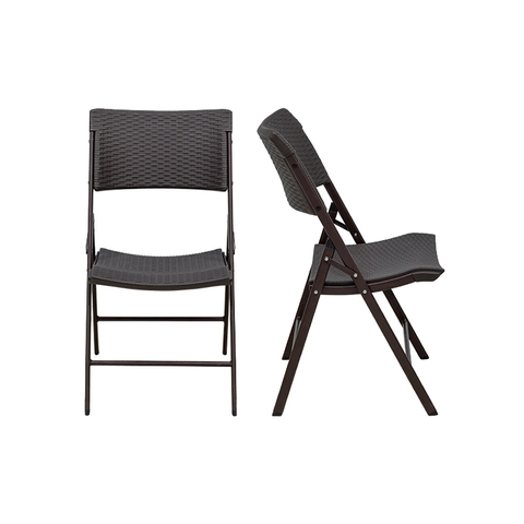 茶色のプラスチックポータブル折りたたみラタン椅子屋外ガーデンダイニング折りたたみパーティーチェアイベント用