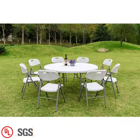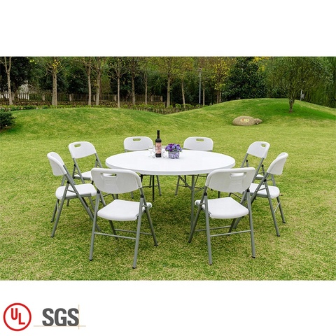 Mesa plegable redonda blanca para exteriores y silla Juego de mesa y silla plegable de plástico HDPE portátil